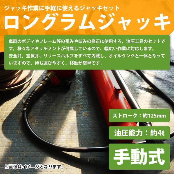 ロングラムジャッキ 4t/4トン 油圧ジャッキ 油圧ポートパワーセット 【油圧式ポートパワーセット ポートパワージャッキ 油圧式ジャッキ ジャッキアップ 車 カー用品 メンテナンス フレーム ボディ 修理】